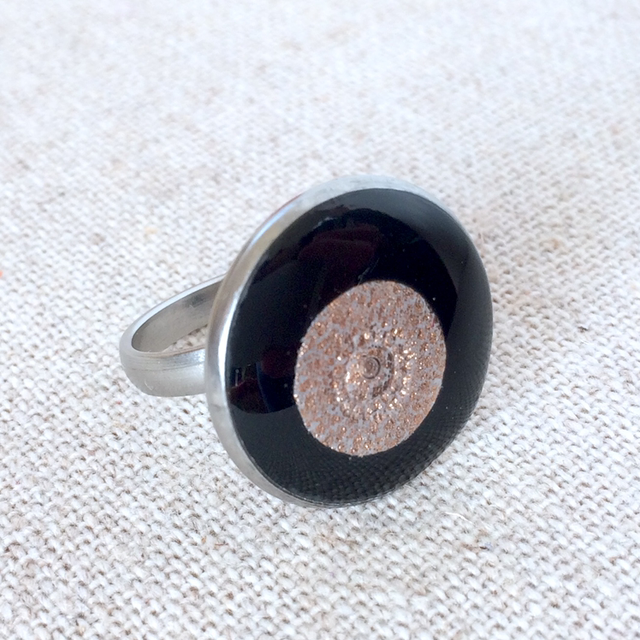 Bague en acier inoxydable, cuir noir et cuivré + résine