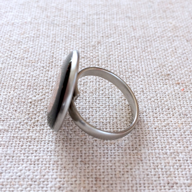 Pour préserver l’aspect brillant de la résine, veillez à ranger votre bague de façon à ce qu’elle ne soit pas en contact avec des matériaux pointus et évitez de pulvériser du parfum dessus.