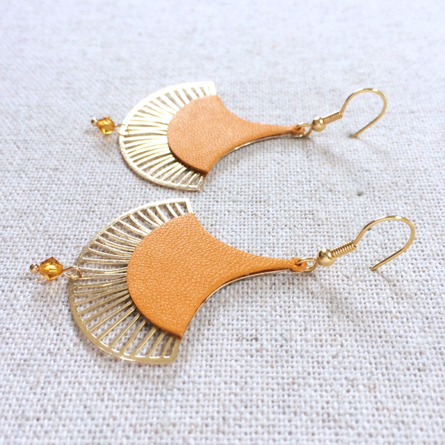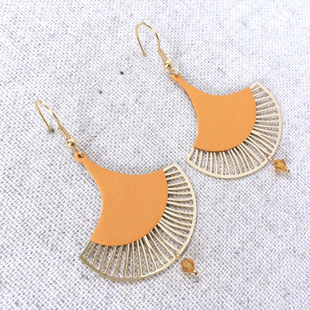 Boucles d’oreilles « Calando » dorées, cuir couleur jaune safran
