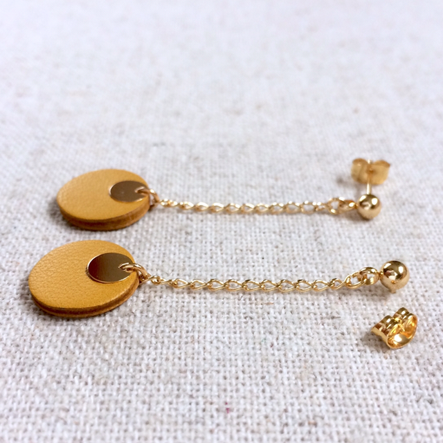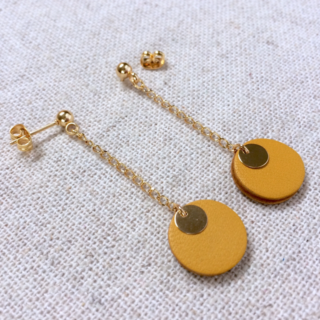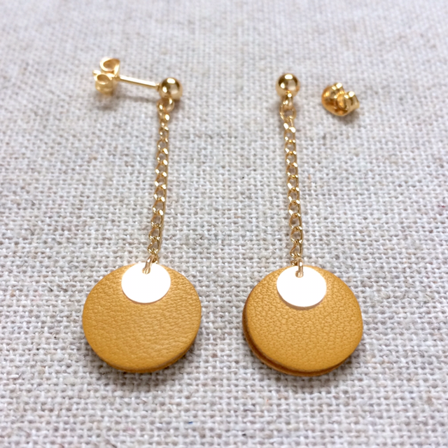 Boucles d’oreilles « Cantabile » dorées, cuir moutarde