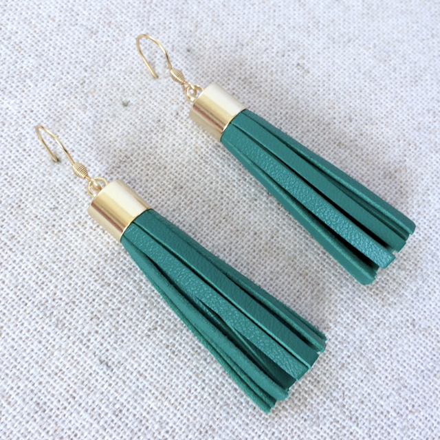 Boucles d’oreilles « Cavatina » dorées, cuir vert émeraude