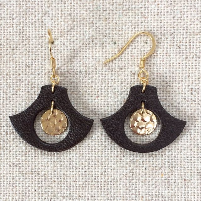 Boucles d’oreilles « Fioritura » dorées, cuir brun