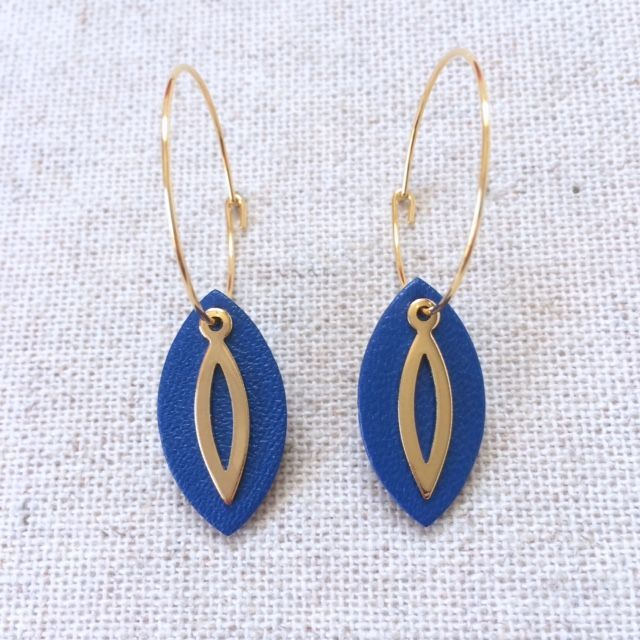 Boucles d’oreilles « Fugato » dorées, cuir bleu outremer