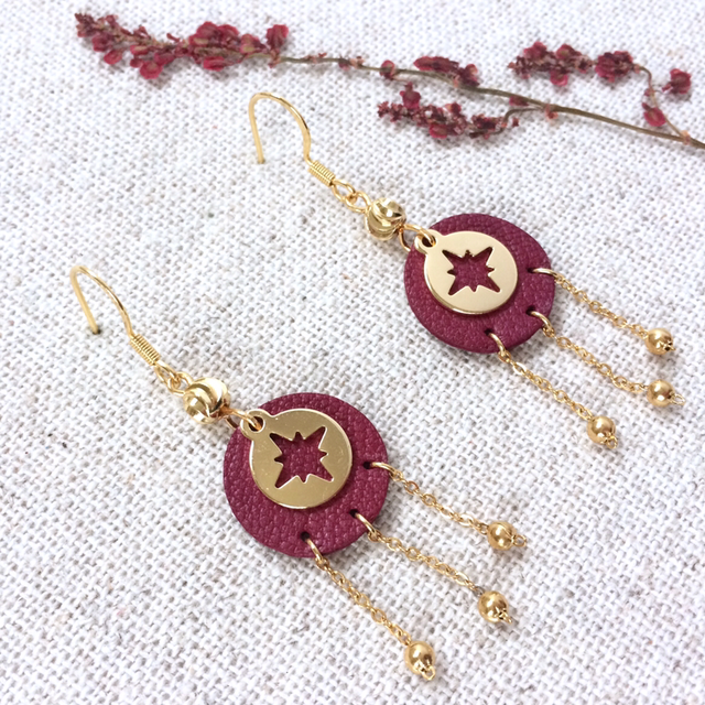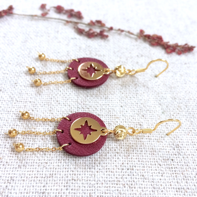 Boucles d’oreilles « Mazurka » cuir bordeaux