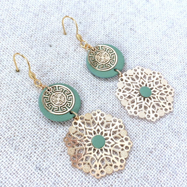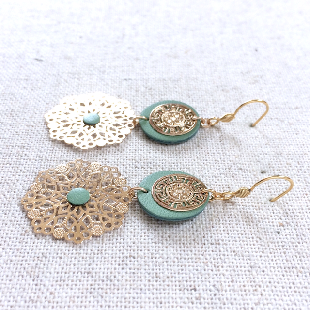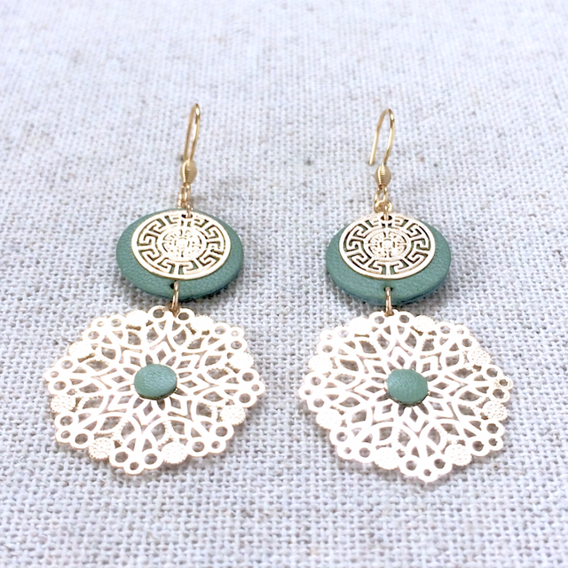 Boucles d’oreilles « Pavane », cuir vert lichen