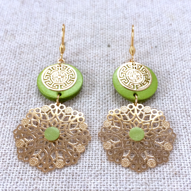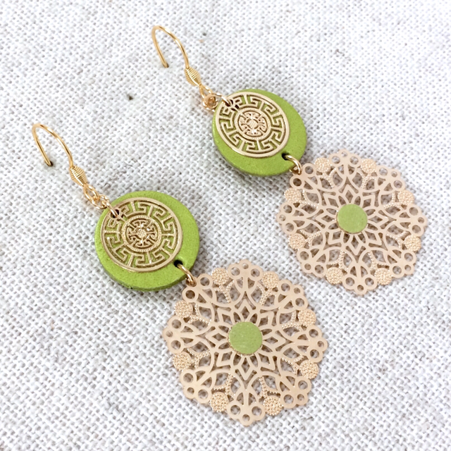 Boucles d’oreilles « Pavane », cuir vert pomme