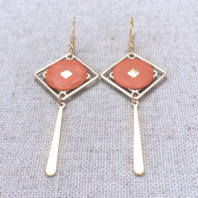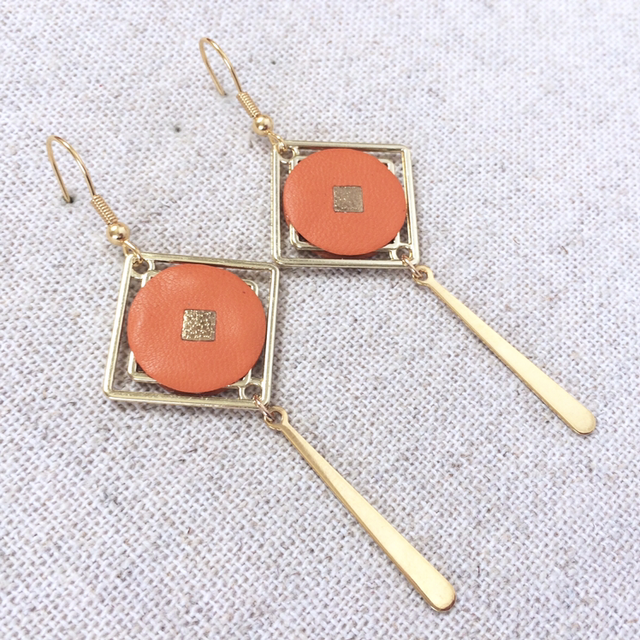 Boucles d’oreilles « Quartet » dorées, cuir orange