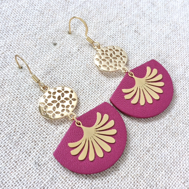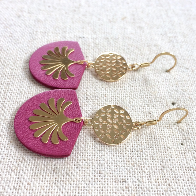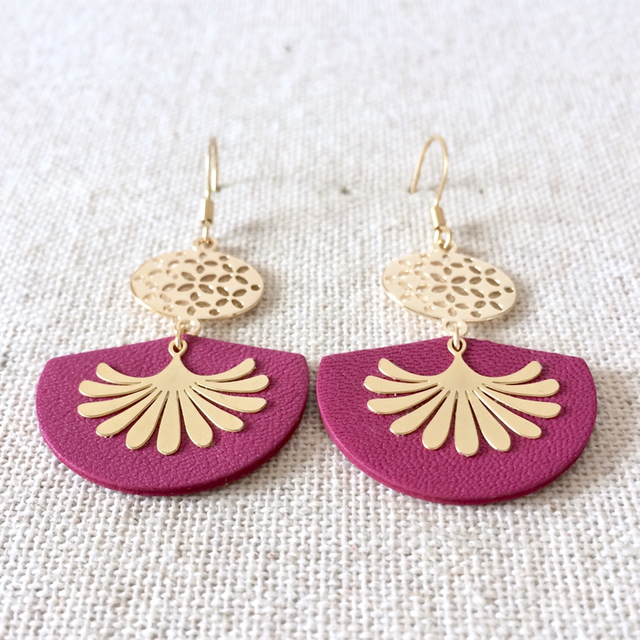 Boucles d’oreilles « Sardana » dorées, cuir violine