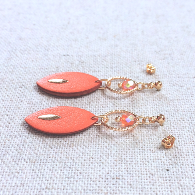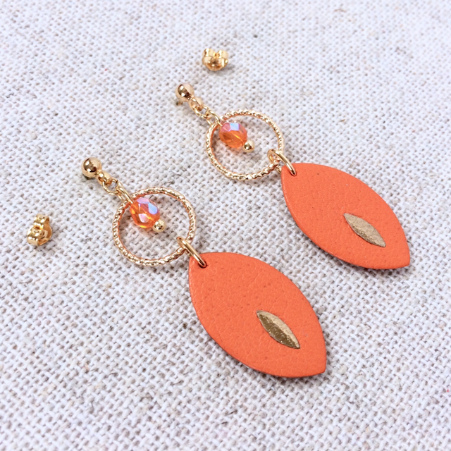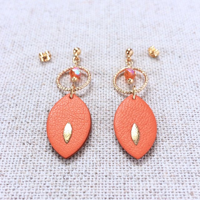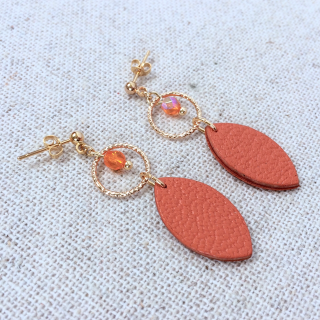 Boucles d’oreilles « Soave » dorées, cuir orange