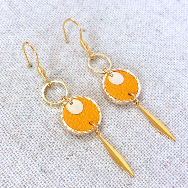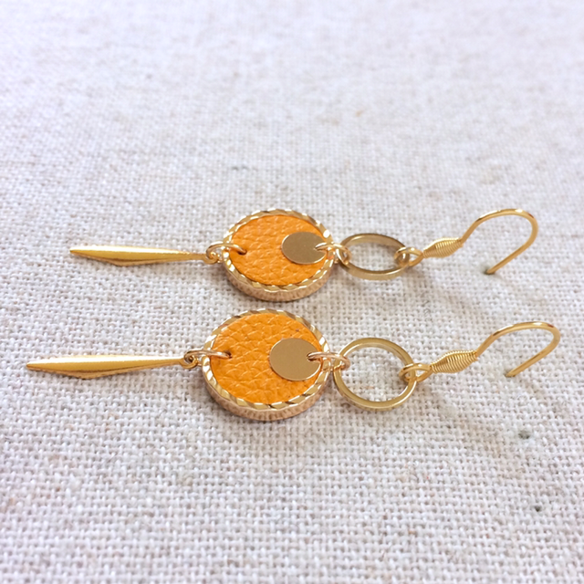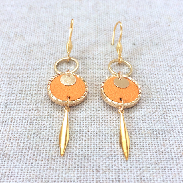 Boucles d’oreilles « Sonate » dorées, cuir safran