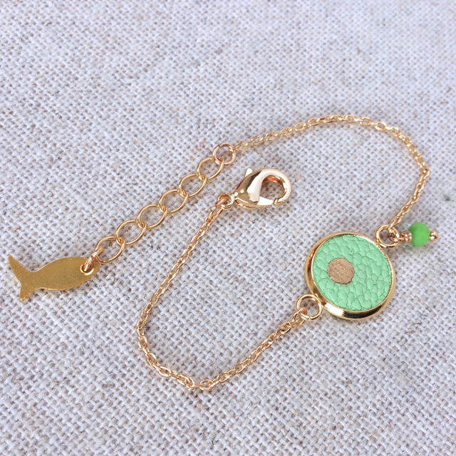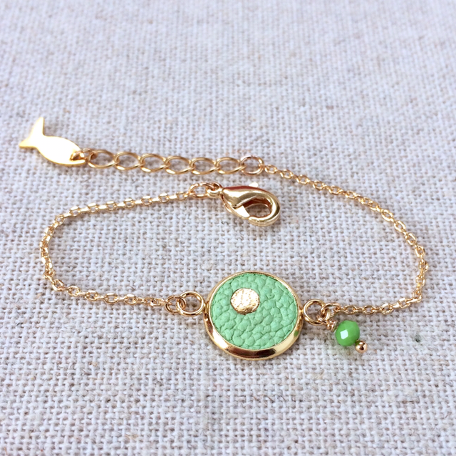 Bracelet enfant « Unisson » doré, cuir vert printanier