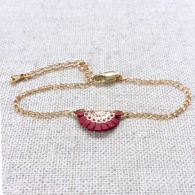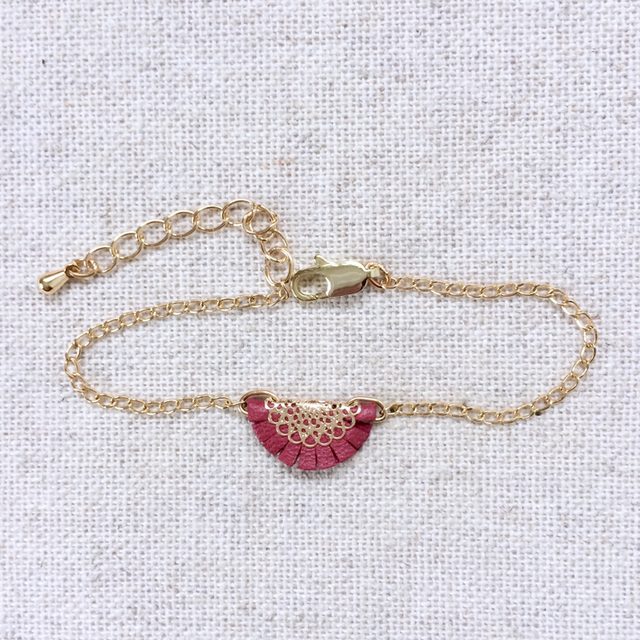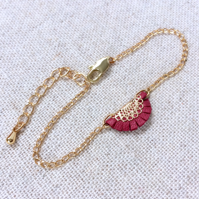 Bracelet « Farandole » plaqué or, cuir rouge sang