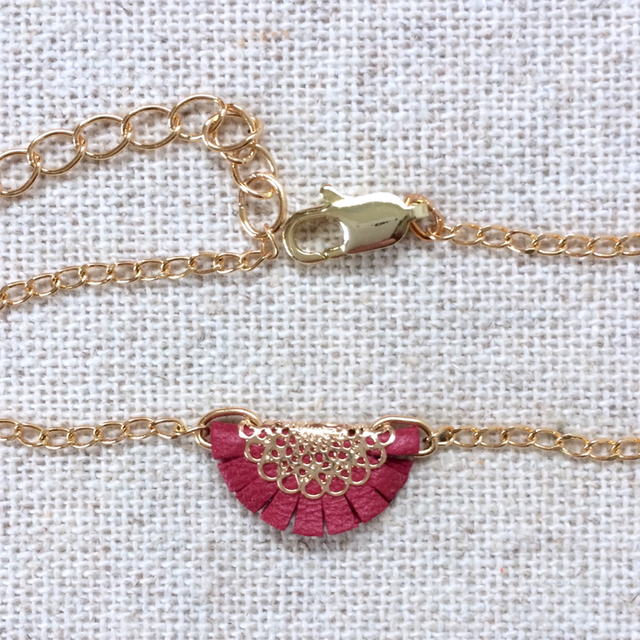 Informations supplémentaires : Tous les apprêts sont garantis sans nickel et sans plomb. Les cuirs (d'origine française) proviennent d'une entreprise locale qui fournit le grand Ouest. Les pièces de cuir ont subi un traitement de protection pour une meilleure pérennité. Veillez à ranger vos bijoux à l'abri de la lumière et de l'humidité et à ne pas pulvériser de parfum dessus.